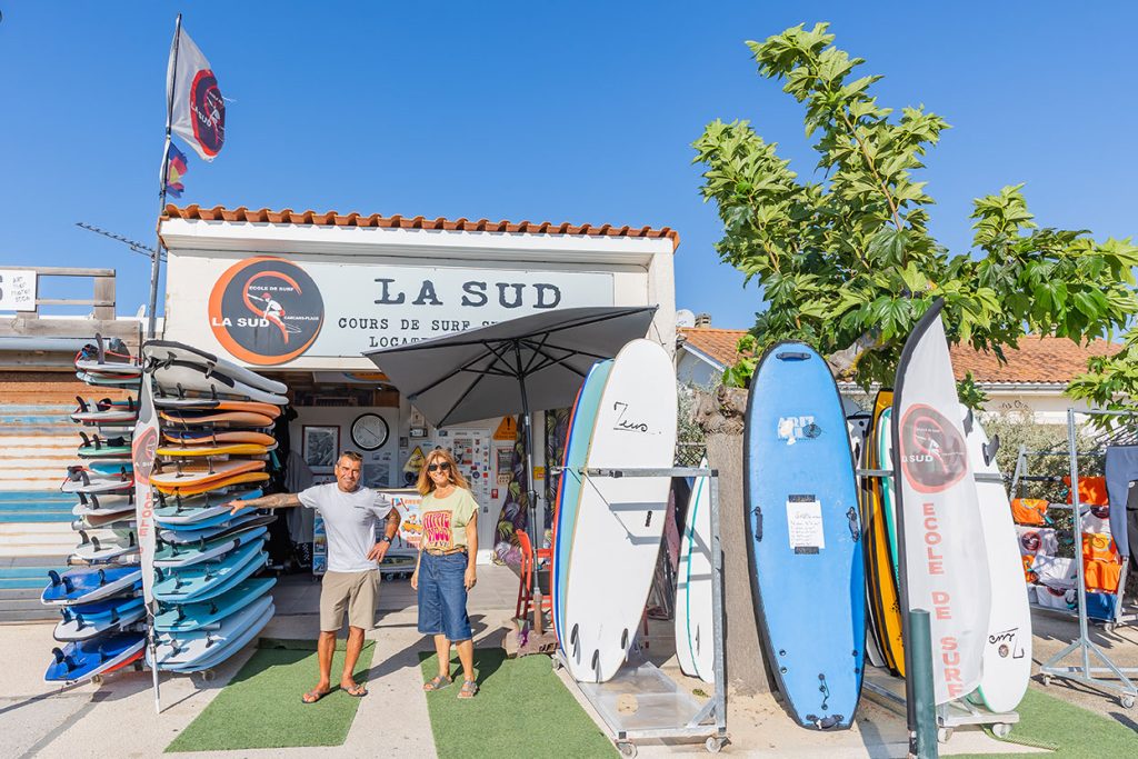 Notre petite école de surf “La sud” a été créé il y a 15 ans par Stéphane, moniteur diplômé d’État passionné et sa femme Nany.